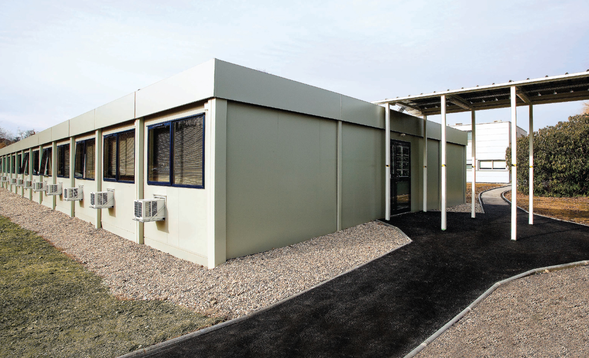 Très esthétiques, les bâtiments modulaires de Portakabin s'insèrent avec harmonie dans l'environnement organisé et ordonné du géant de la santé.