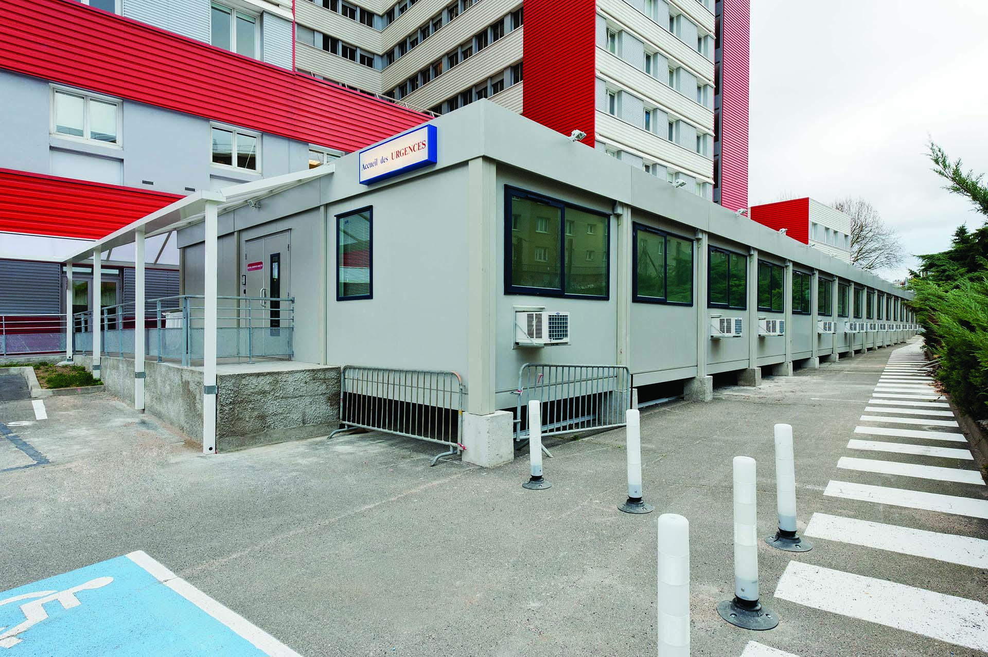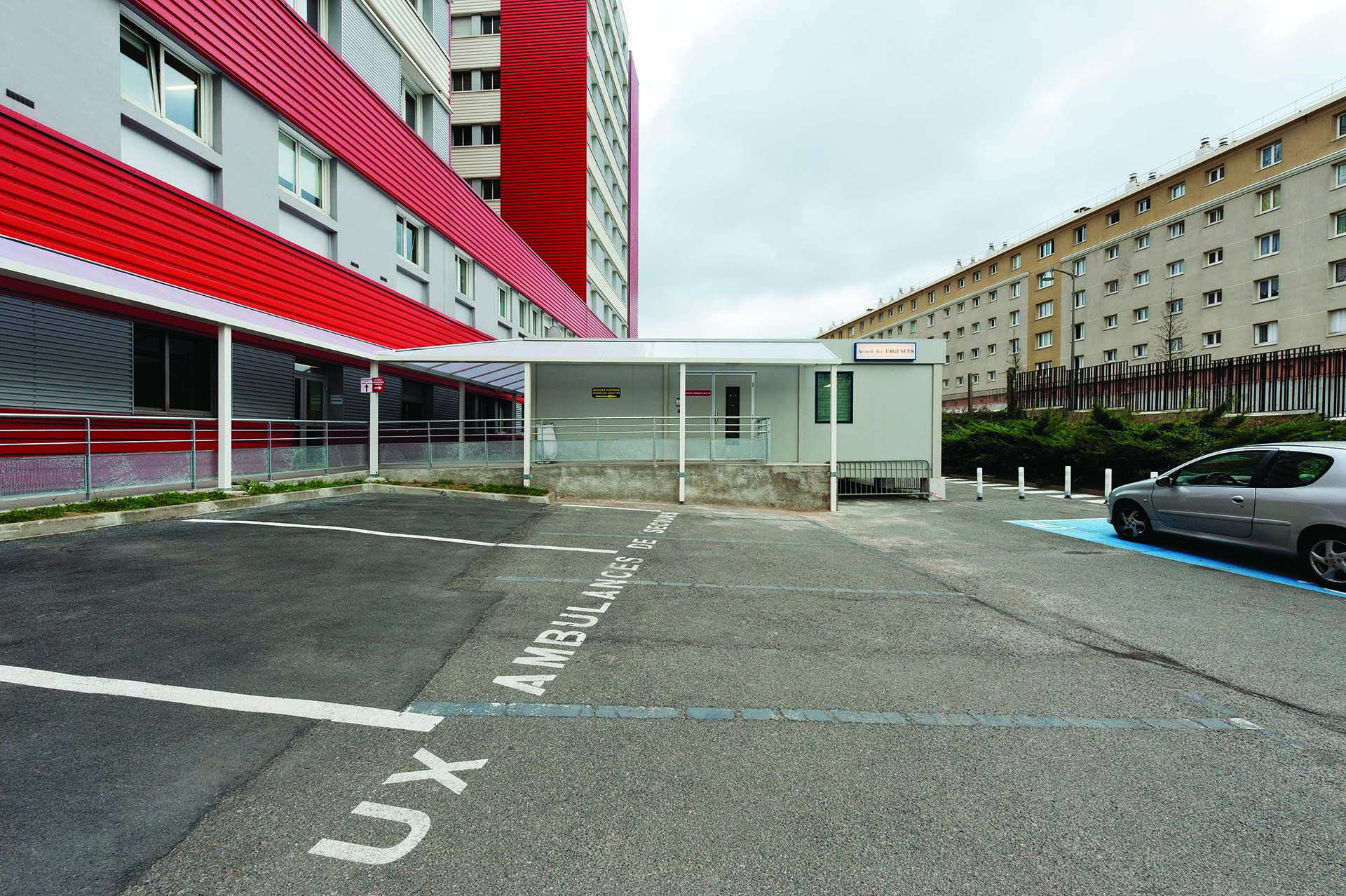 - Locaux aménagés sur un parking en bordure de l'hôpital
