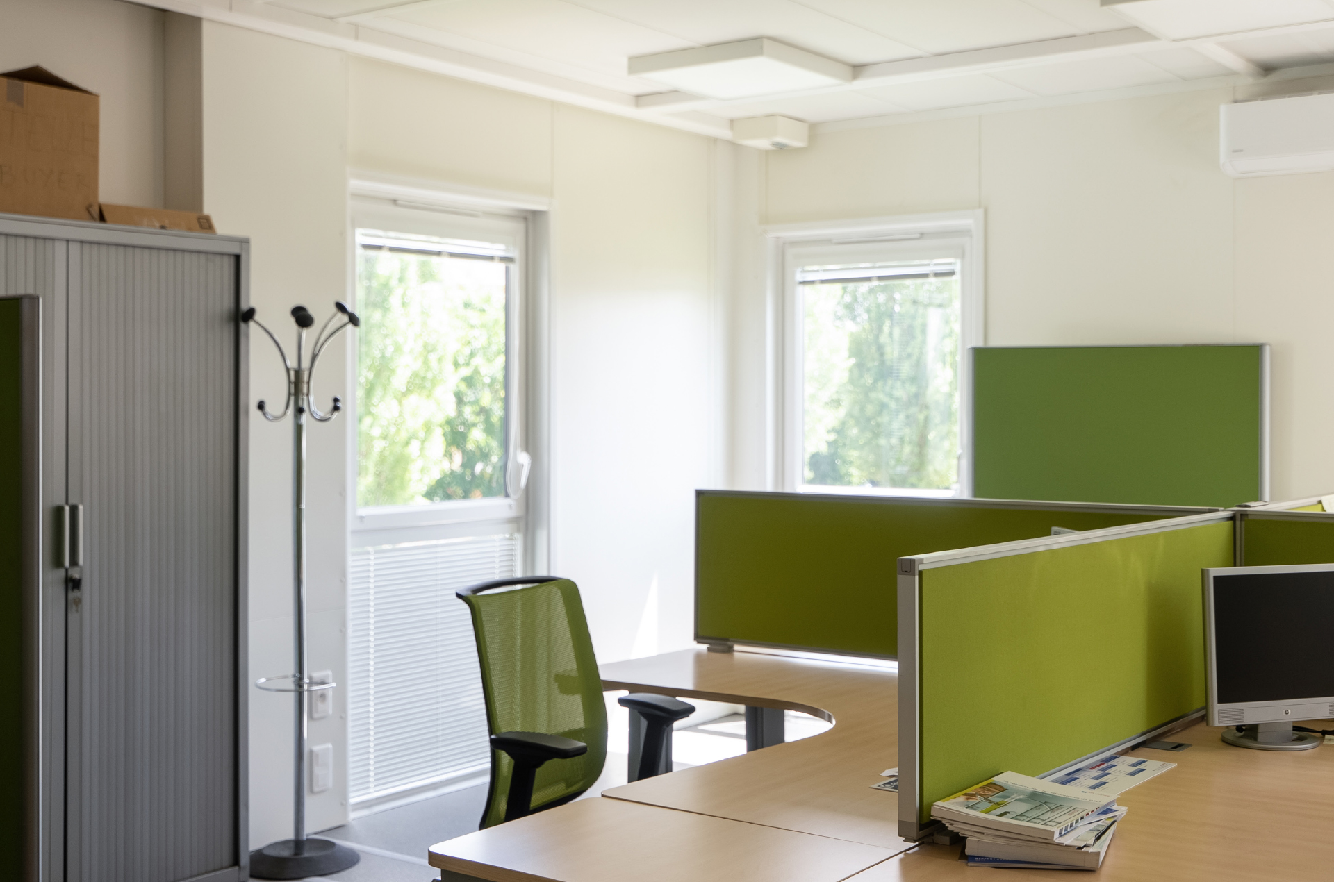 With a deadline to vacate its premises by the end of the year, Air Liquide needed an urgent solution to provide work, meeting and storage space for its 22 Le Blanc-Mesnil-based employees for a two-year period. The company is an innovator in renewable energy, so in addition to having a short turn around time between brief and project delivery, site integration, energy efficiency and high technical standards were crucial to project approval.