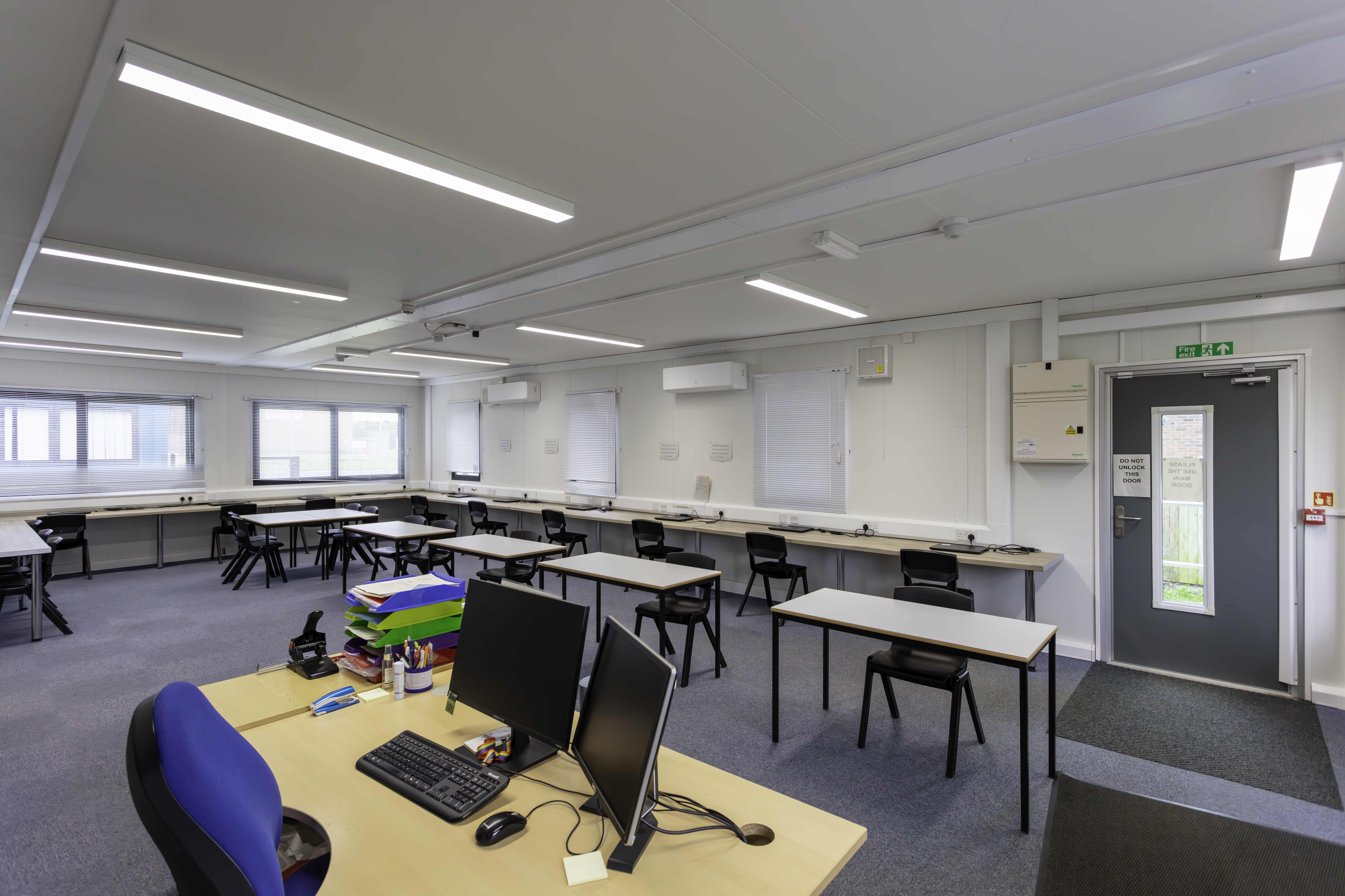The project had a tight turnaround with facilities needing to be installed and handed over ready for the start of the new school year in September. In addition to all groundwork, including new pathways, the Portakabin solution, made up of eight Portakabin Duplex buildings, saw the creation of two additional classrooms, a spacious SEN room, IT Suite including data points, as well as office space for teaching staff.