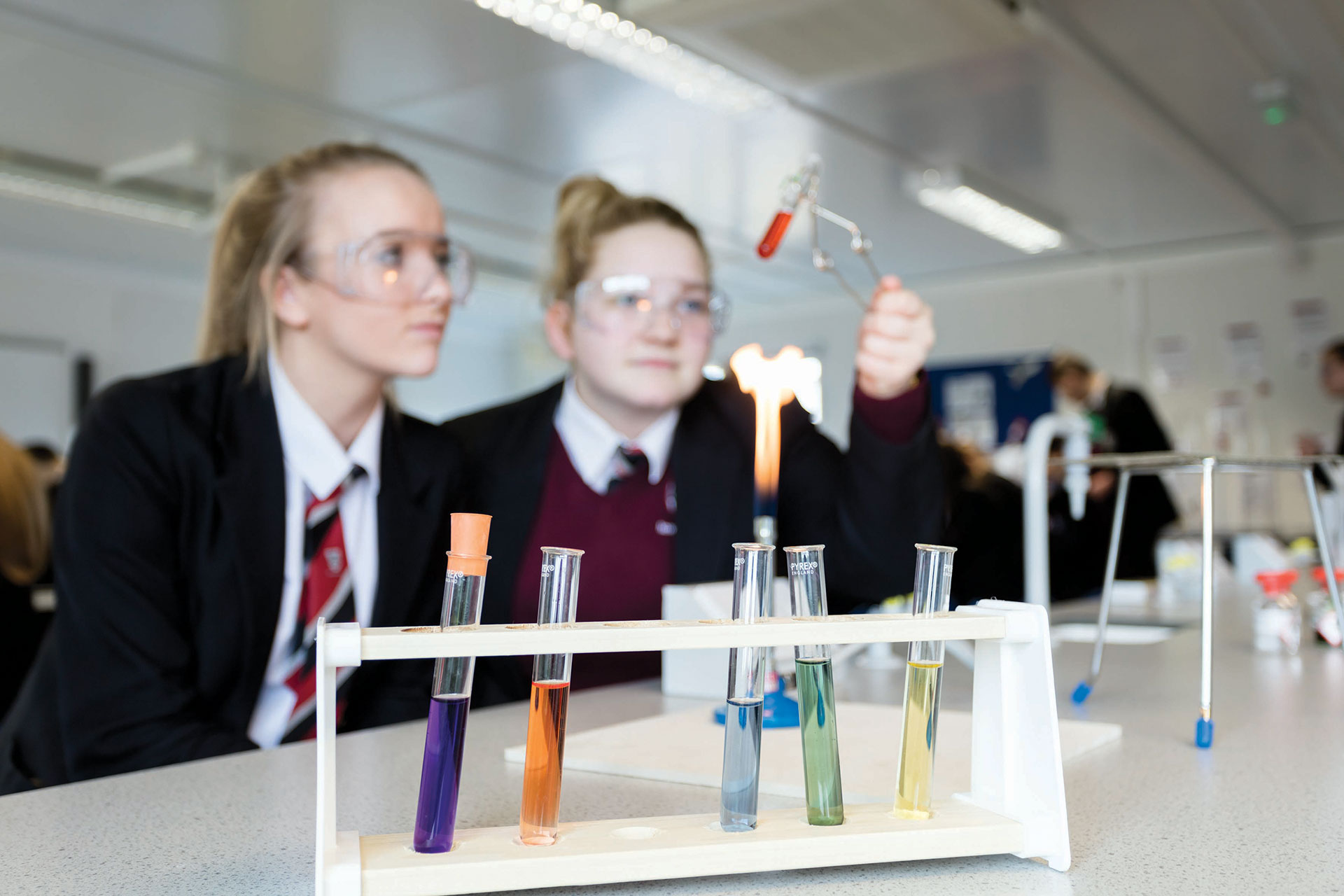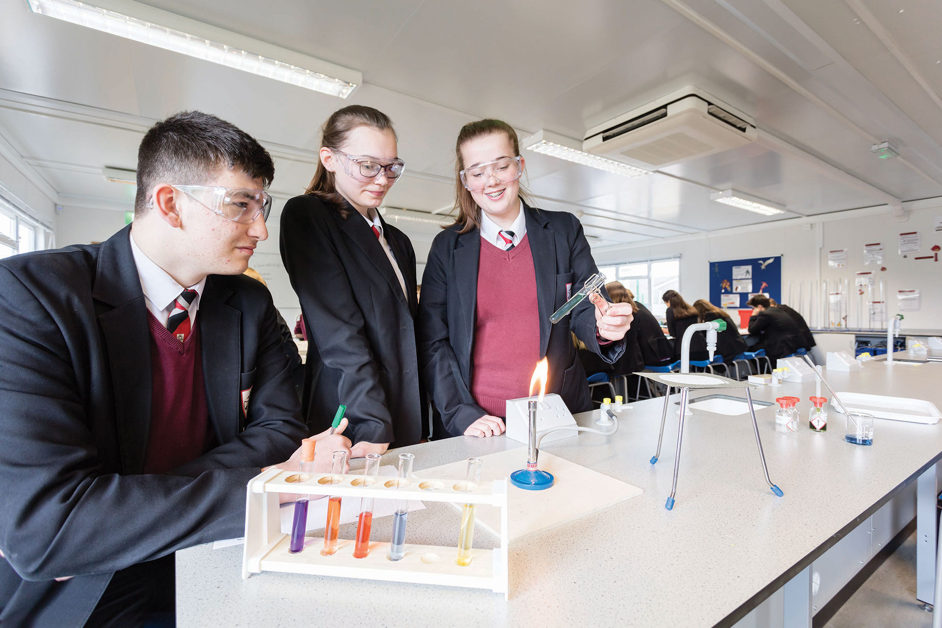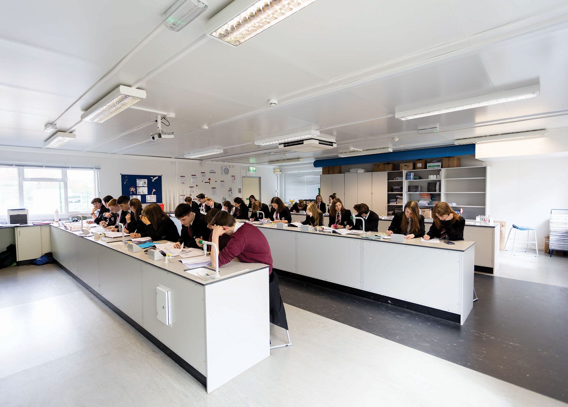 - Science laboratories – fitted with non-slip vinyl flooring, fume cupboards, air extraction and ventilation, gas taps, sinks, data connections, and two laboratories have adjacent preparation rooms