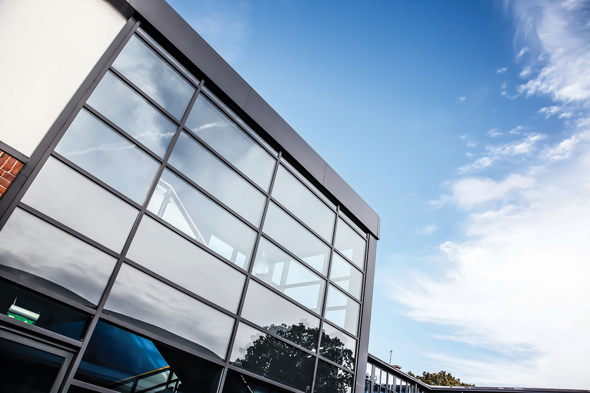 - Windows, doors and aluminium cladding panels in anthracite grey