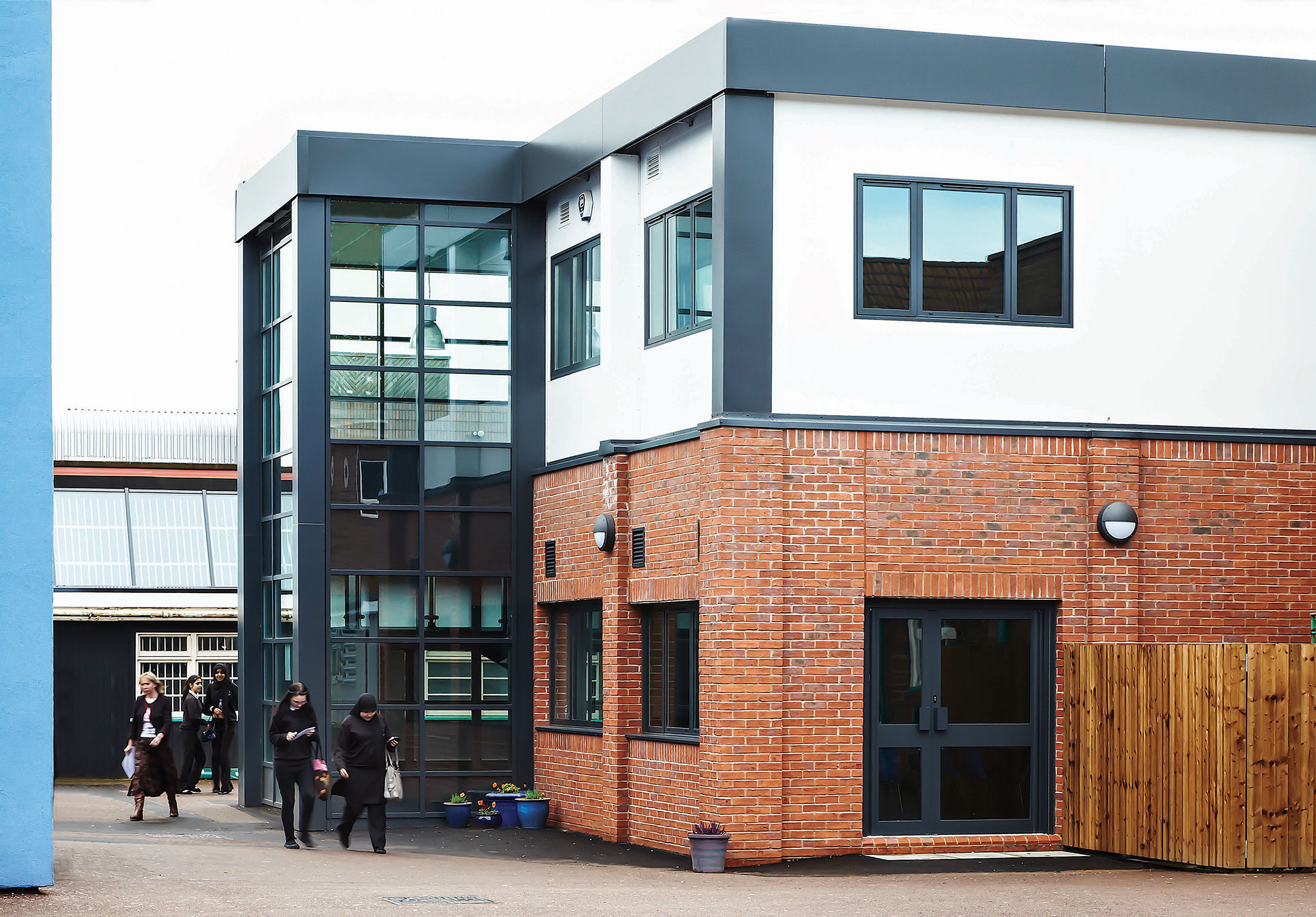 - A glazed link corridor to the main school building