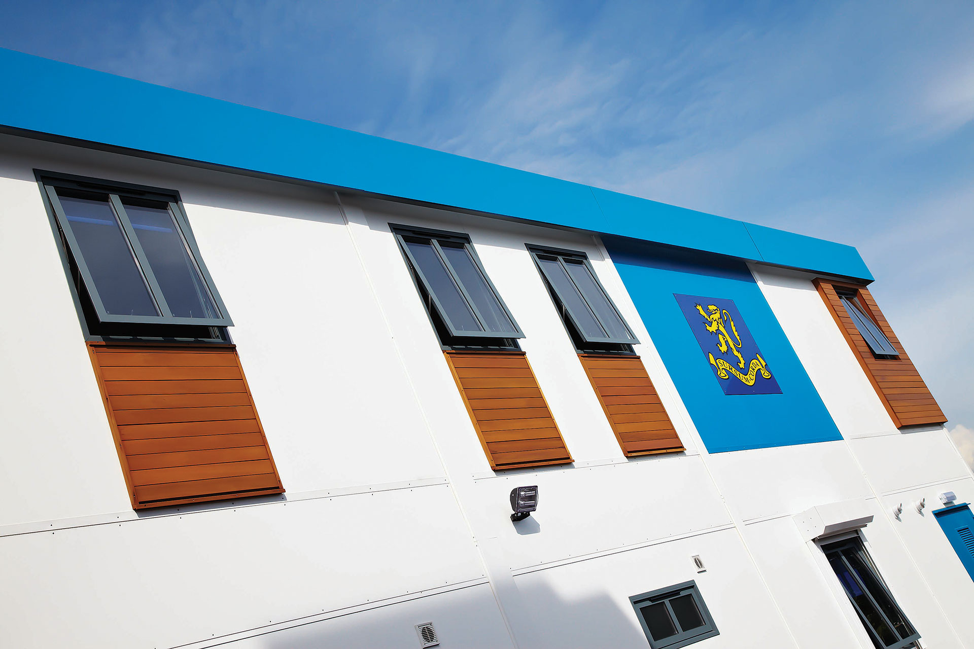 The two-storey scheme was constructed from 44 refurbished modules which were reconfigured to create eight classrooms, a science laboratory, office accommodation, beverage point, disabled access lift, PE changing rooms, and a fitness suite which the community can use outside of school hours.