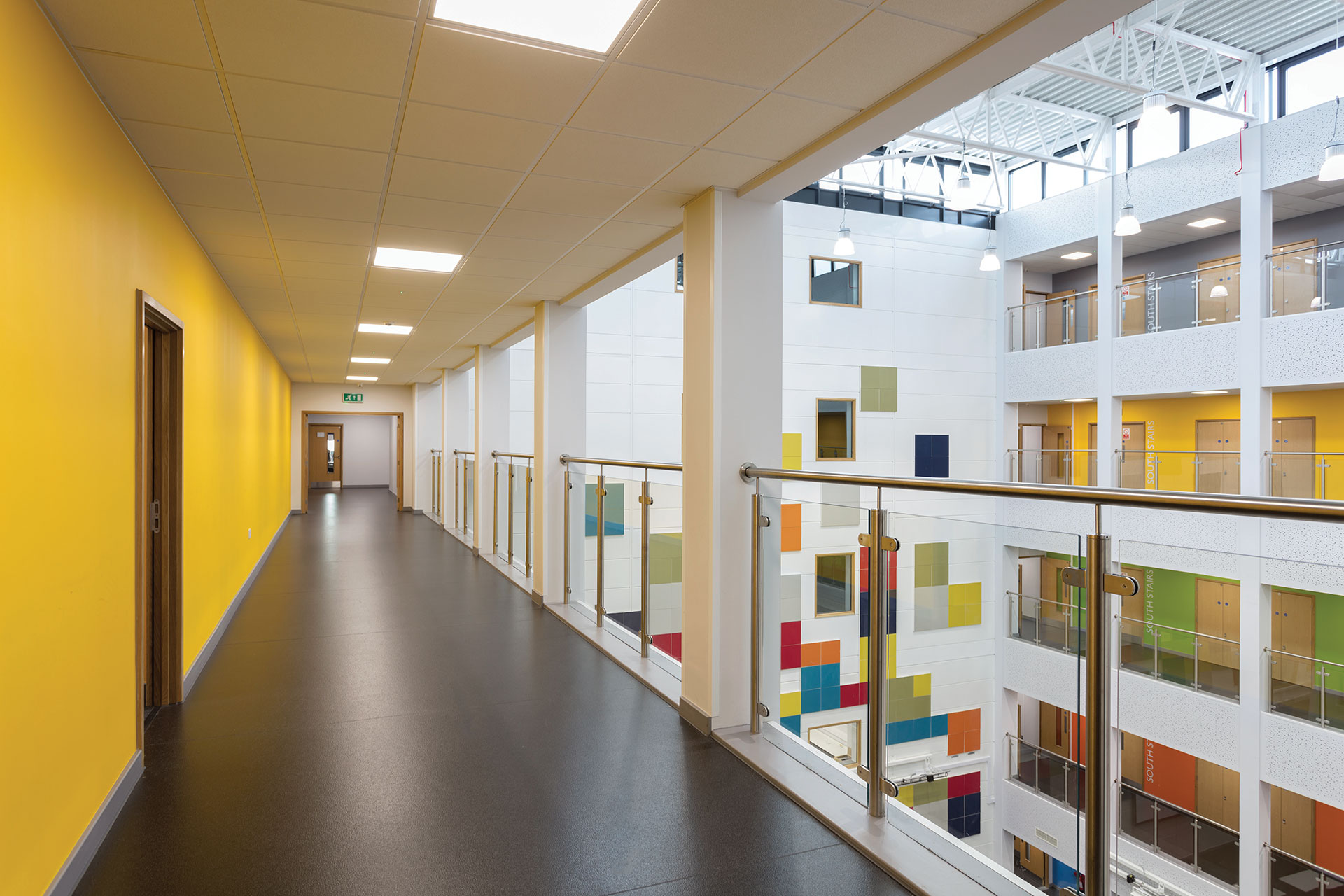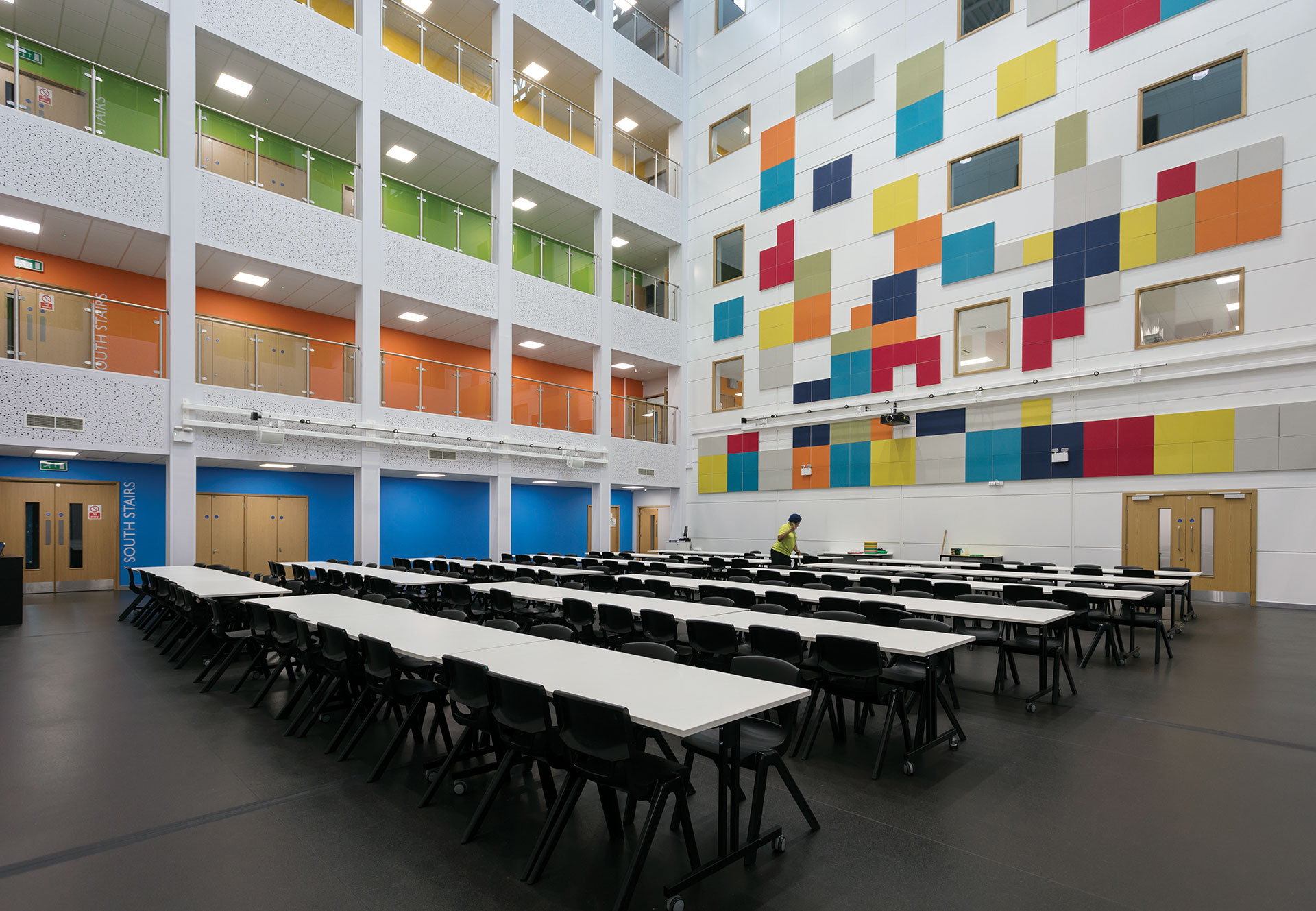 - Hybrid five-storey atrium with balconies overlooking dining area