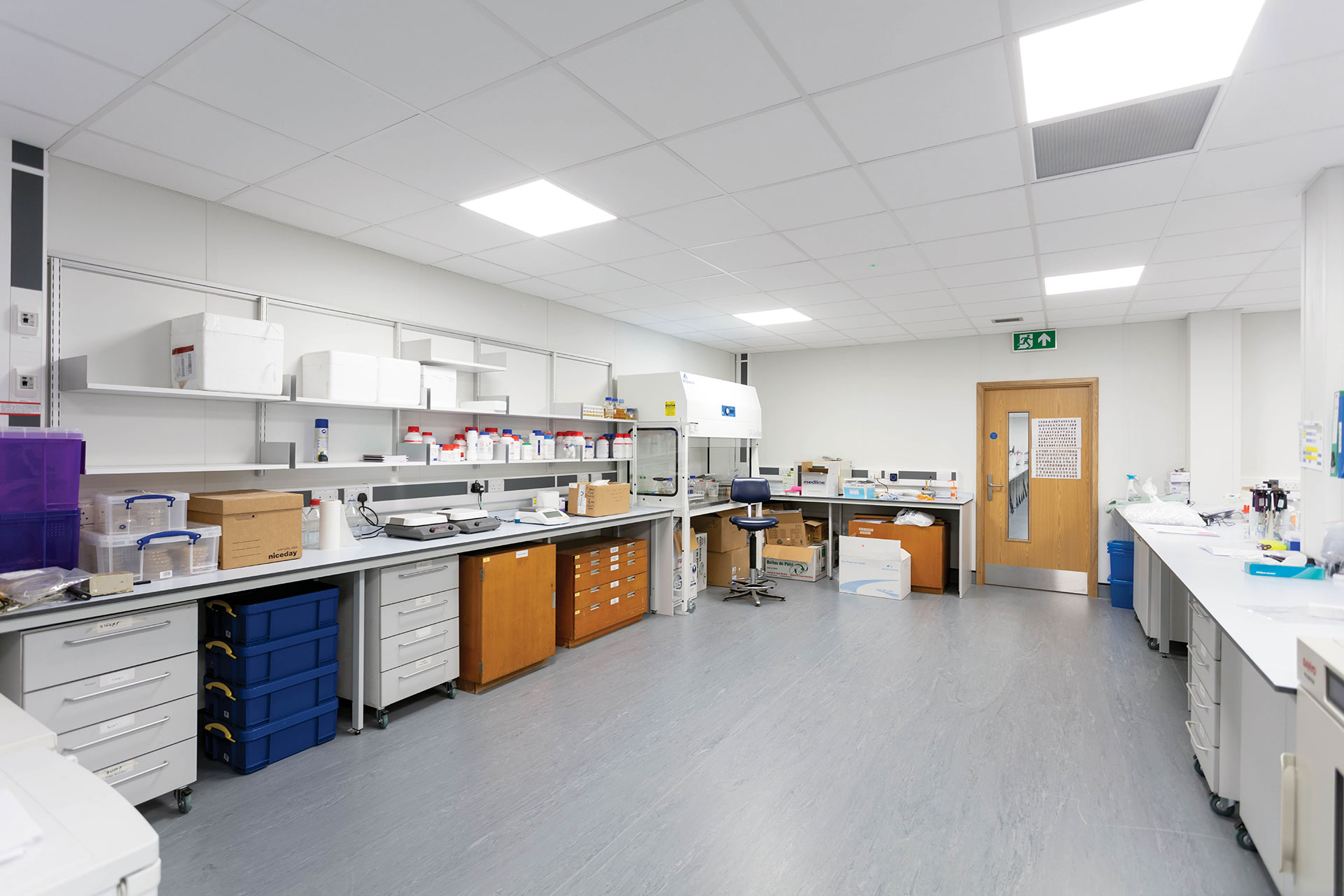 Adrian Yap, Principal, fjmt studio comments, “As part of the decant for the Tinbergen Building, fjmt studio were commissioned to design, in collaboration with Portakabin, three modular laboratory buildings. Although only intended to provide temporary accommodation for a period of up to five years, the modular laboratories still needed to provide state-of-the-art facilities for the world leading departments. These facilities ranged from Cat 2 wet laboratories and constant temperature rooms to over 50 specialist testing booths, some electromagnetically shielded to enable EEG studies.”
