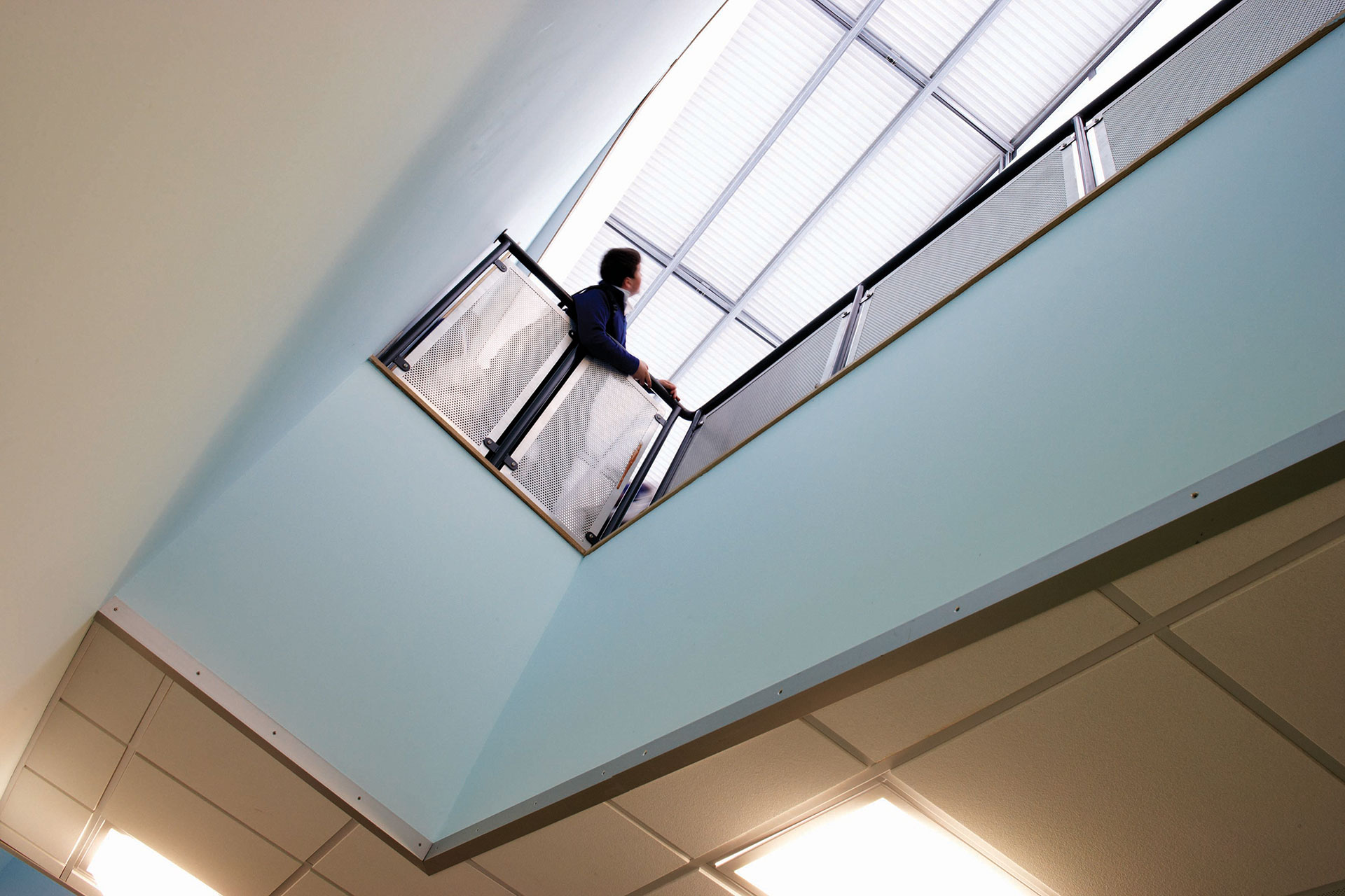 The building features a number of sustainable elements to reduce energy consumption, carbon emissions and running costs. These include biomass heating, passive ventilation, rainwater harvesting and the use of light wells and extensive glazing to reduce the reliance on artificial lighting.