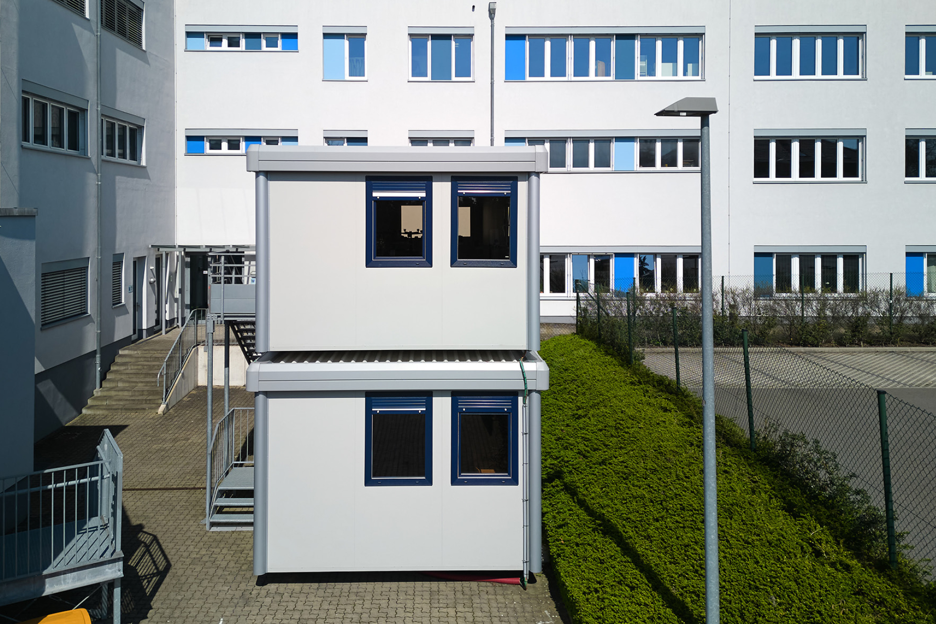Das Robert-Schuman-Institut in Eupen wurde Opfer seines Erfolgs: Nachdem zwei Schulen auf diesem Campus zusammengeführt wurden, hat diese technische Schule nun zu wenig Platz! Die Schulleitung hat sich daher an das Ministerium der Deutschsprachigen Gemeinschaft gewandt, um eine Lösung zu finden. Dieses Platzproblem betrifft insbesondere die Abteilung für Familienhilfe, die bereits sehr viele Schüler hatte und für die es zahlreiche Neuanmeldungen gab. Die Bedürfnisse dieser technischen Einrichtung sind einfach: ein Klassenzimmer für den theoretischen Unterricht und ein Raum für die Praxis. Ralf Lutterbach, Ingenieurberater für das Ministerium der Deutschsprachigen Gemeinschaft, erklärte, dass sich die Portakabin-Gebäude bei der Ausschreibung sowohl aus technischer als auch aus wirtschaftlicher Sicht als die interessanteste Lösung erwiesen hätten.