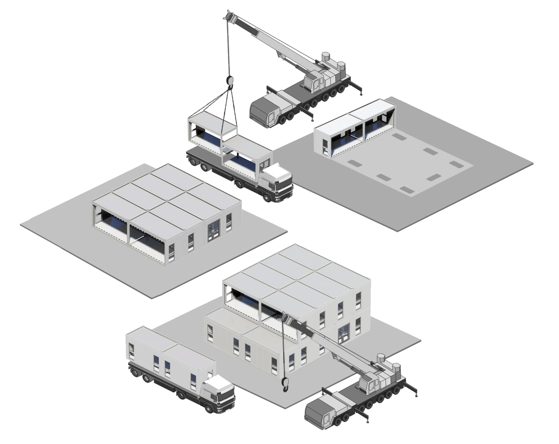 Alta-Gebäude bieten eine modulare Lösung auf der Basis von 6 m x 3 m großen Modulen für öffentliche Einrichtungen und viele Arten von Arbeitsräumen. Dabei werden die Anforderungen fast aller Standorte berücksichtigt.