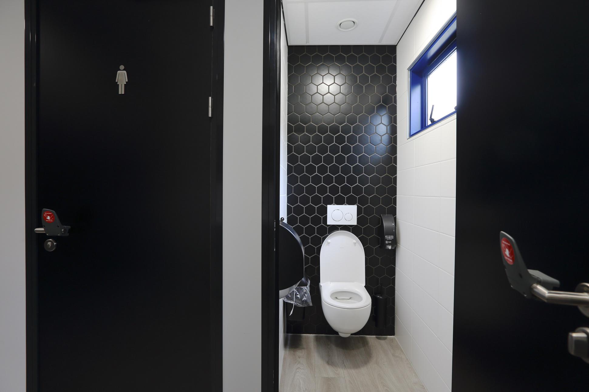 Verplaatsbare toiletunits die voldoen aan alle richtlijnen waar toiletten in permanente gebouwen aan moeten voldoen