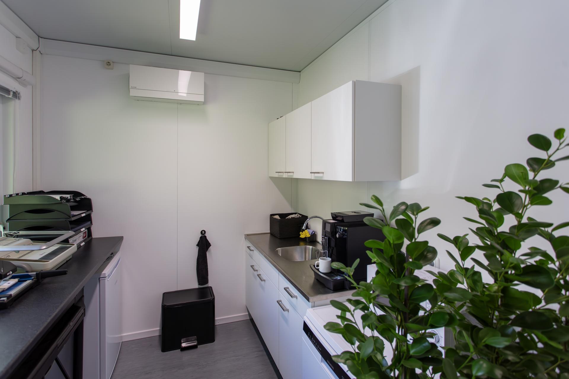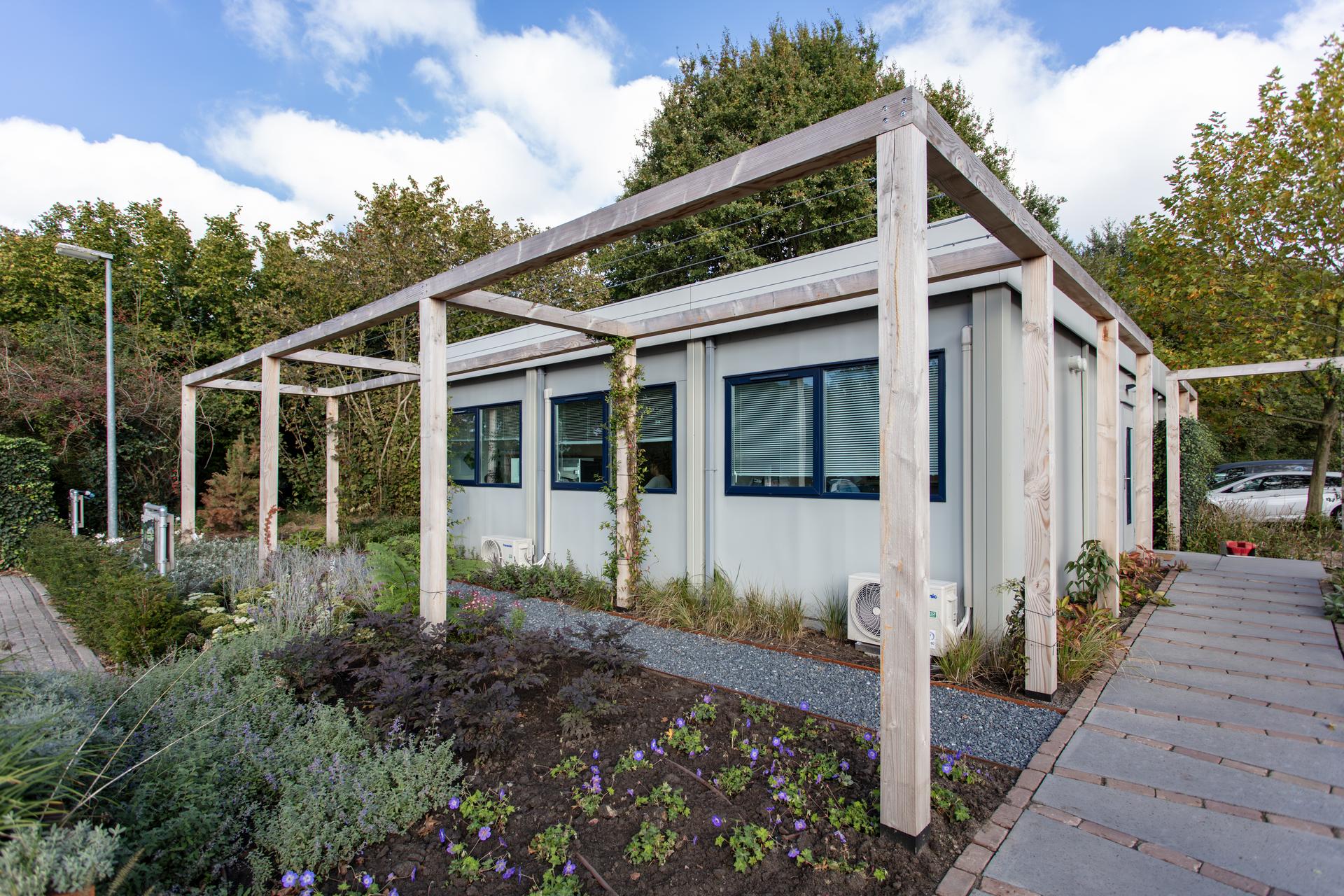 Green M2, een hoveniersbedrijf in Doetinchem kwam met de vraag voor een tijdelijk kantoor. Het is een kleine organisatie en zelf zijn ze ook eindgebruikers van het gebouw. Het gebouw had een receptie nodig, kantoorwerkplekken, een vergaderruimte, een ruimte voor de administratie, een keukenblok en sanitaire voorzieningen. Er was behoefte aan een licht kantoor.