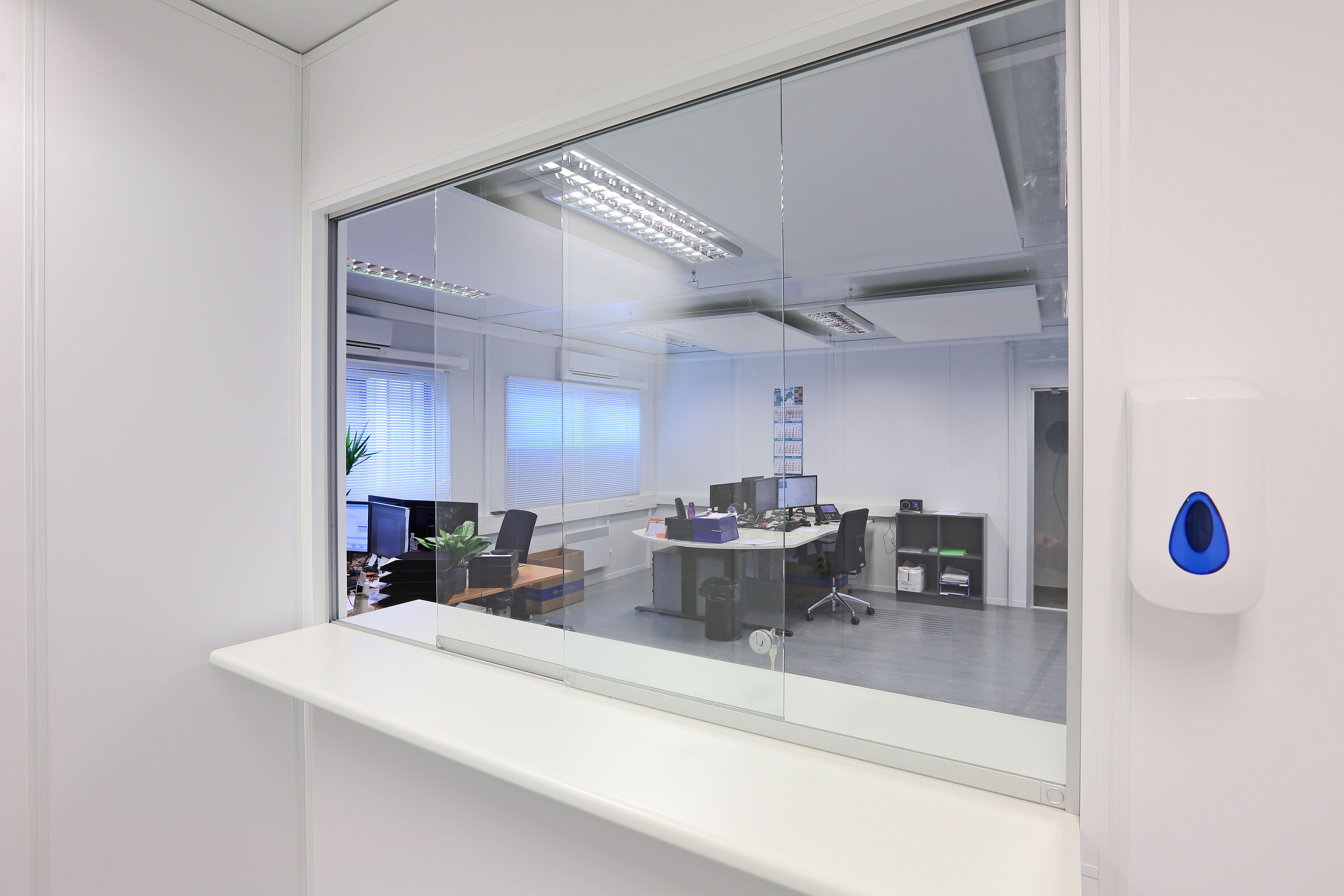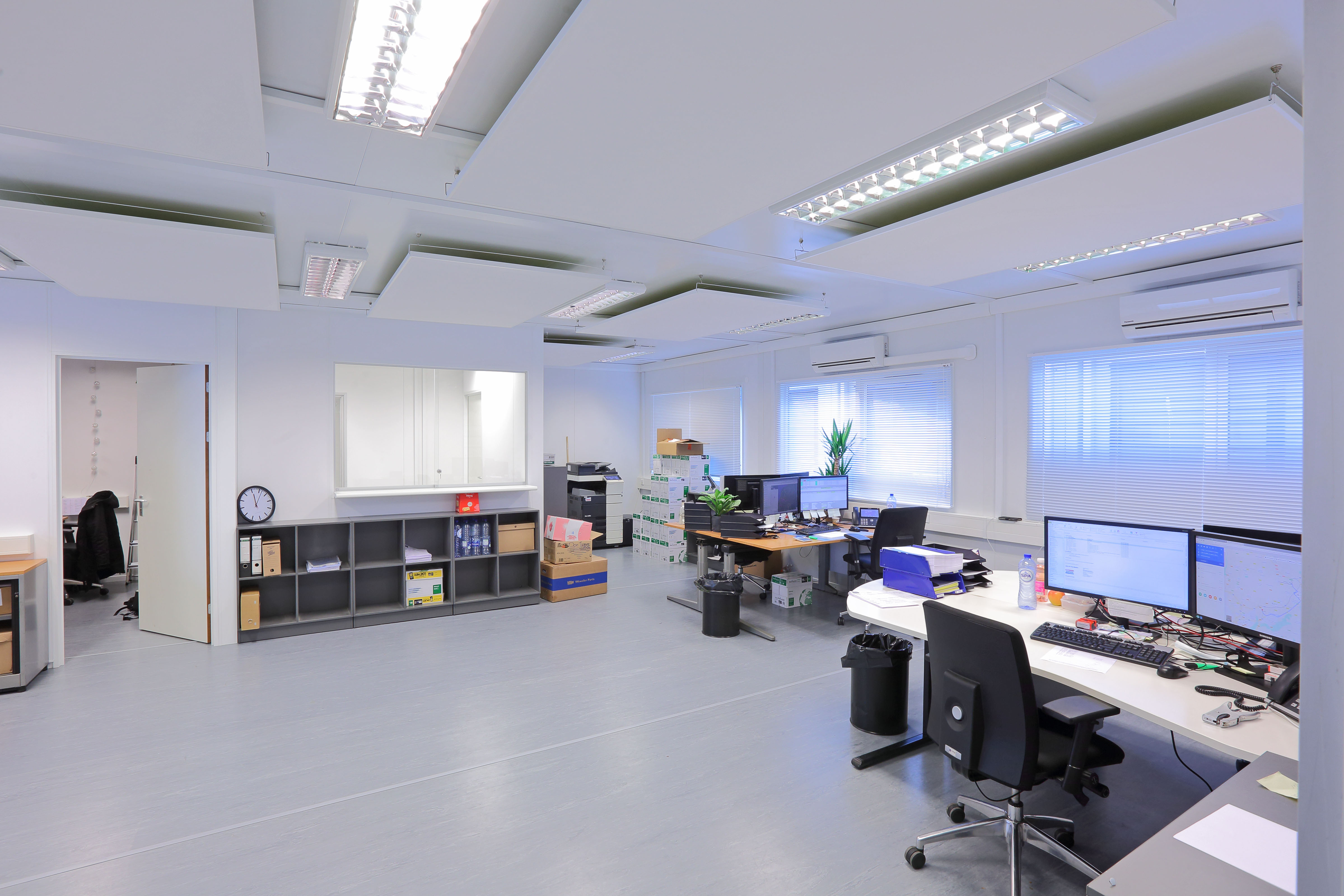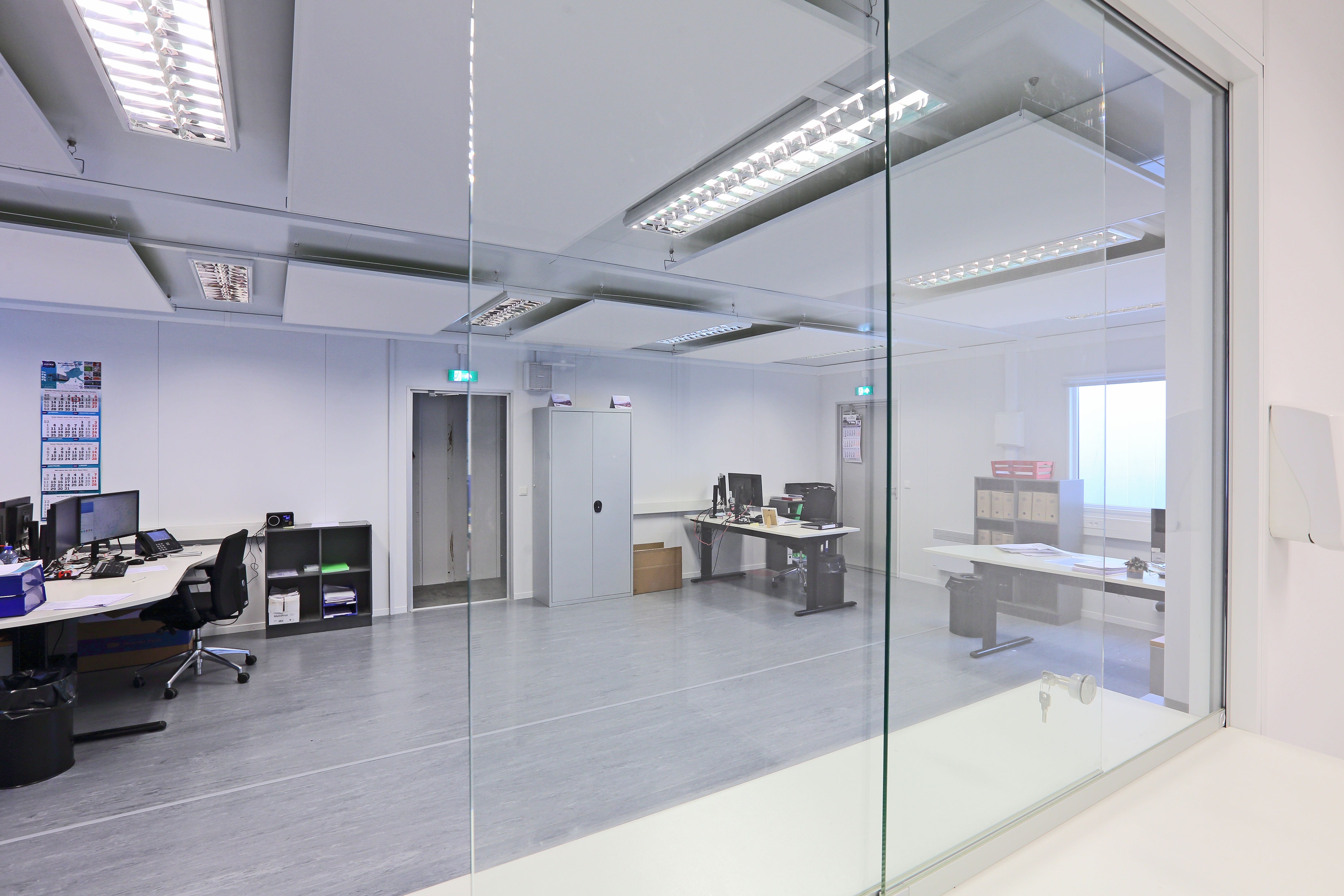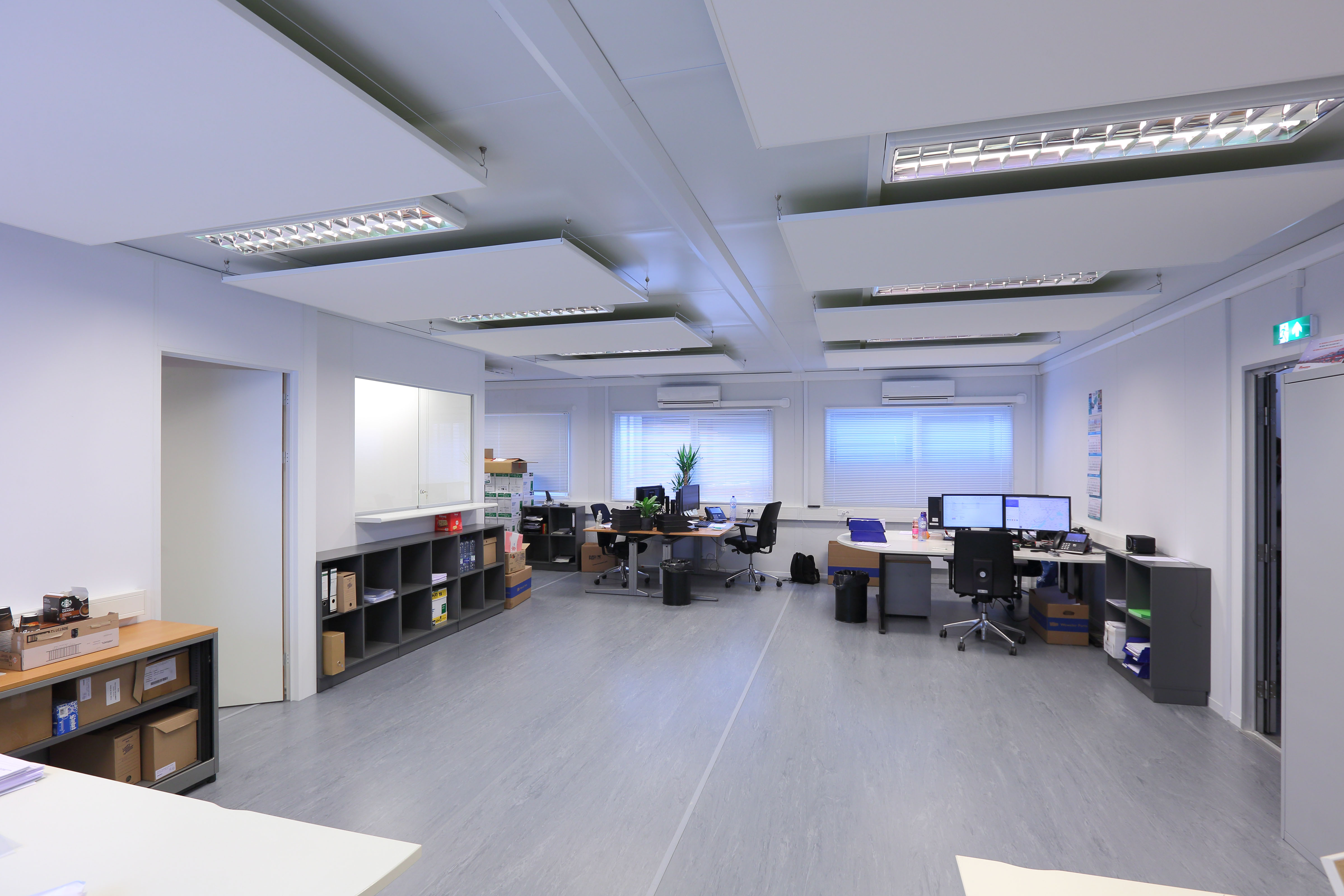 Een kantoorgebouw bestaande uit 3 Ultima units geeft ruimte voor een kantoortuin, een apart kantoor en een balie voor de chauffeurs uit Spanje en Italië. 2 weken voor het kantoor op de werkplaats werd afgebroken is het Portakabin gebouw – inclusief fundering – geplaatst, een volbrachte uitdaging met hoge tijdsdruk door het team van Portakabin! 8 Collega’s van Kotra