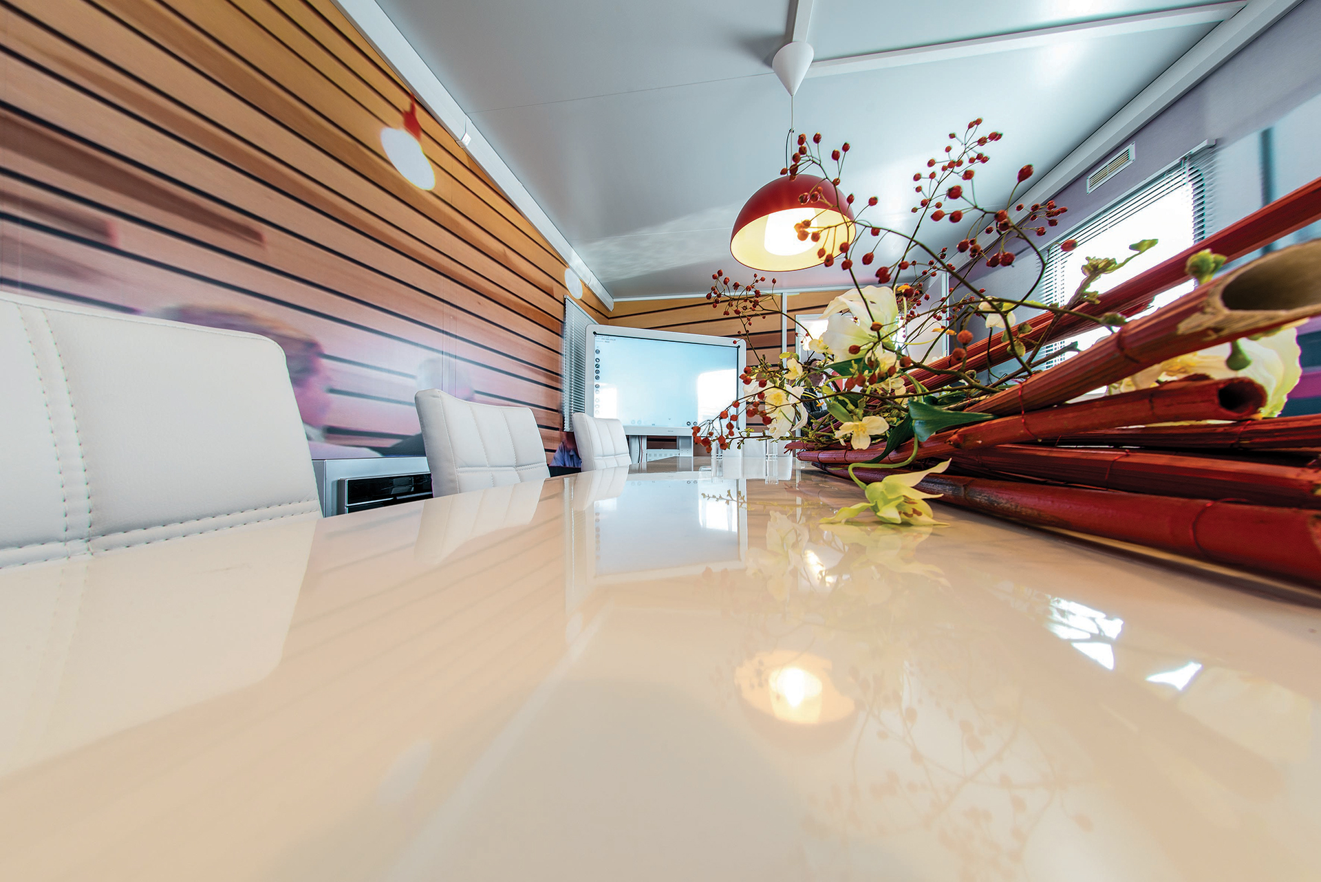 De oplossing werd gevonden in een single modulaire unit van Portakabin. De Pacemaker PK402 unit is aan de binnen- en buitenkant geheel gehuld in een design gemaakt door Ricoh. Het pop-up kantoor is ingericht met een ontvangstruimte voor klanten. Een airco is geplaatst om te zorgen voor een aangenaam klimaat in de zomermaanden.
