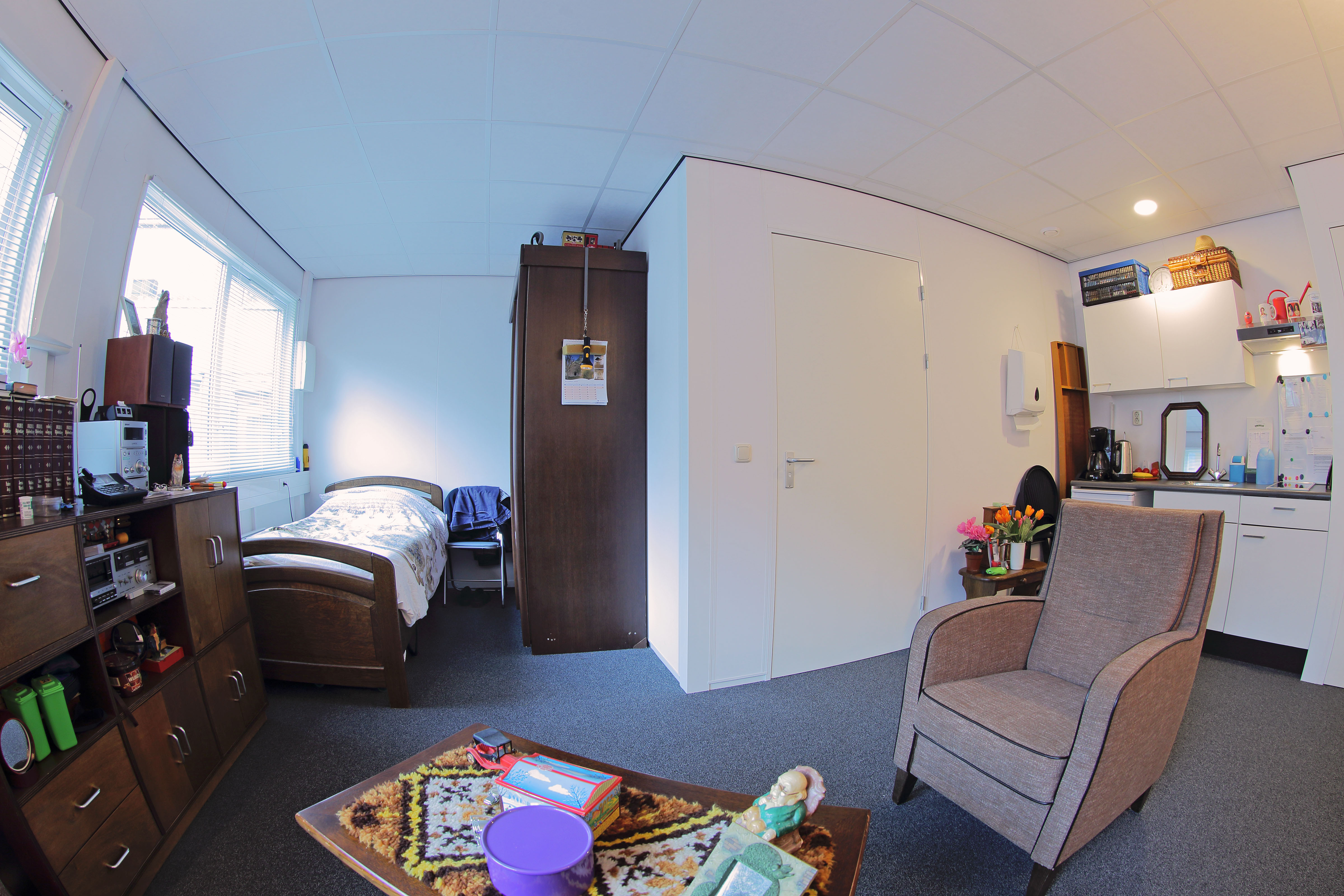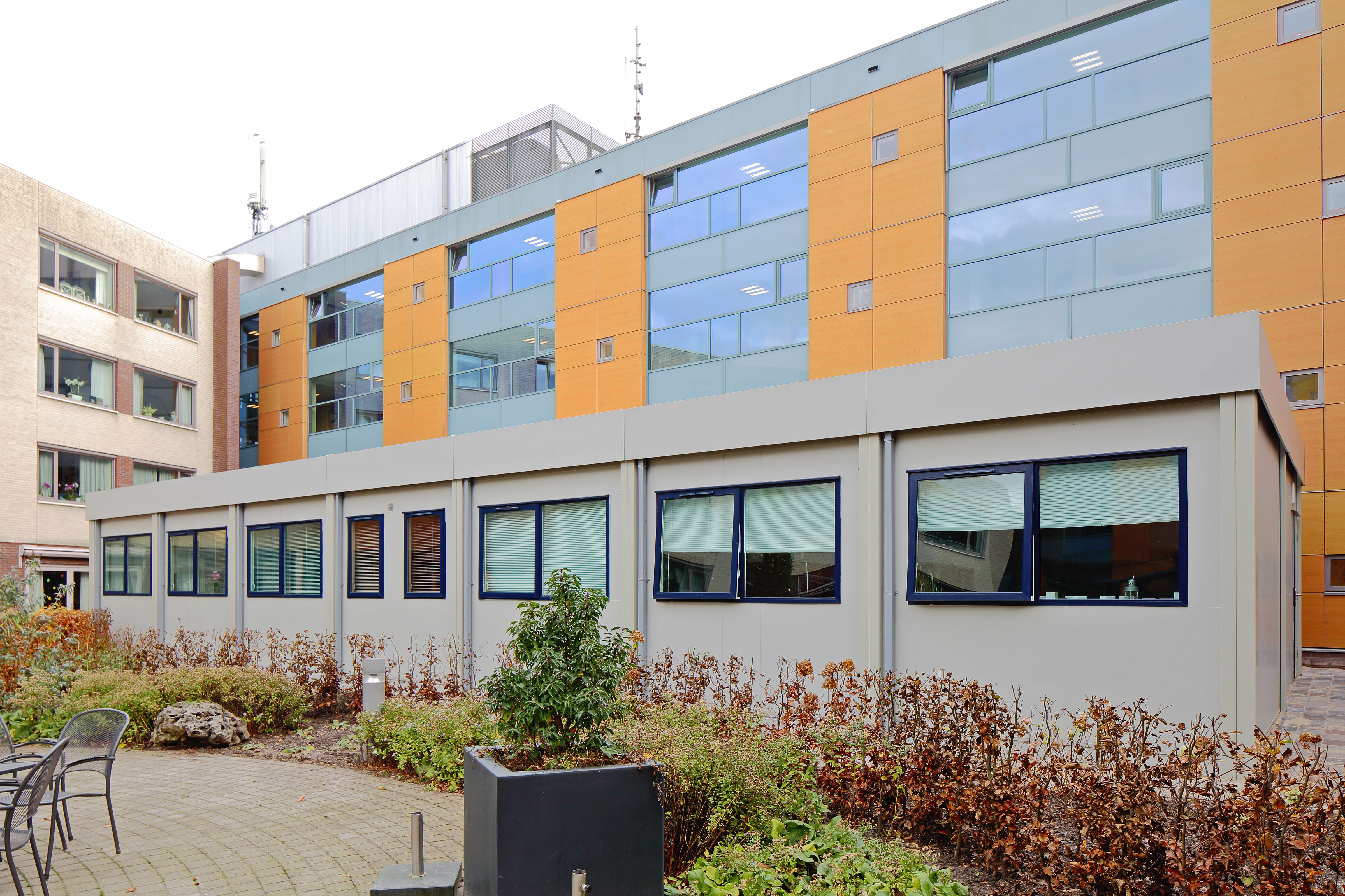 Een gebouw waarin de drie cliënten konden blijven samenwonen maar ook hun persoonlijke ruimte hadden was van groot belang, dit is perfect gerealiseerd in het Portakabin gebouw. Doordat een plaatsing met behulp van een grote kraan in de binnentuin van ons bestaande gebouw mogelijk was zorgt het ook voor een flinke besparing in zorgkosten. Een Win-Win situatie.